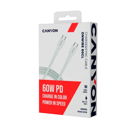 • Commercial Name CANYON cable OnWire 60CL C-C 60W COLOR Braided 1m White