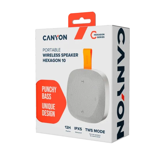 Meet the Hexagon 10 Portable Wireless Speaker. With an eye-catching hexagonal shape and punchy bass, this speaker stands out in both style and performance. The Hexagon 10 boasts an impressive 12 hours of playtime on a single charge. That’s half a day of your favorite tracks, podcasts, or playlists. And when it needs a recharge, plug it in for about 4 hours, and you’re back to business. Designed for clarity and depth, this speaker doesn’t just play music, it makes you feel it. With TWS mode, you can pair it with a second Hexagon 10 for a stereo effect that takes your listening experience to the next level – surround sound, but portable. Hexagon’s IPX5 waterproof rating means it’s tough enough to handle splashes, drizzles, and poolside adventures without breaking a sweat. Compact in size at 115x115x50mm, it slips easily into your bag, which makes it the perfect travel companion. The tech is as sleek as the design. With Bluetooth 5.3 at its core, you’ll enjoy a faster, more stable connection with a range of up to 10 meters. There’s no more dropouts; instead, say hello to smooth streaming, whether you’re hosting a party or winding down for the night. The Hexagon 10 is the balance of style, durability, and powerful audio performance, all wrapped in a unique design. Let it take center stage and amplify every sound.