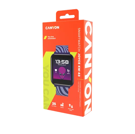This flashy smartwatch is quite remarkable — it will definitely make itself heard. KW-43 Joyce was crafted especially for teens, and it boasts a nifty user interface that’s as easy to use as a spoon. You can change watch faces by choosing from built-in options, the app's library, or by creating your own custom watch face. With notifications for calls and messages, you can always stay connected. The dual Bluetooth feature allows connection to TWS/Bluetooth headphones or a Bluetooth speaker for your kid’s musical cravings. Speaking of tunes, the KW-43 Joyce has 512Mb of storage and a built-in speaker so they can groove to their favorite beats on the fly. And with the camera and music remote control, they can snap pictures and switch tracks without even pulling out their phone. That’s not all: KW-43 also comes with three pre-installed games to keep its owner entertained. And with active health monitoring for heart rate, calories, and steps, this smartwatch encourages a healthy lifestyle. For the sporty teens out there, Joyce boasts 25 sports modes to choose from. Whether they’re into basketball, soccer, or swimming, this smartwatch can track their progress and help them hone their skills. With up to 8 days* of battery life and IP67 waterproof rating, this smartwatch is tougher than most devices of its class. Keep the worries away! If your teen is active and loves gadgets, KW-43 is the device you should get!
