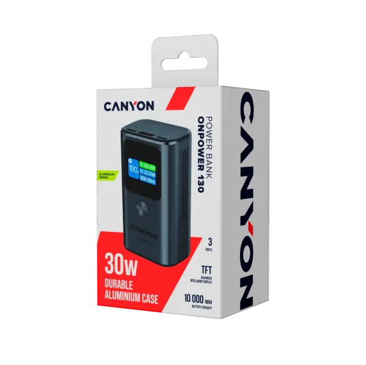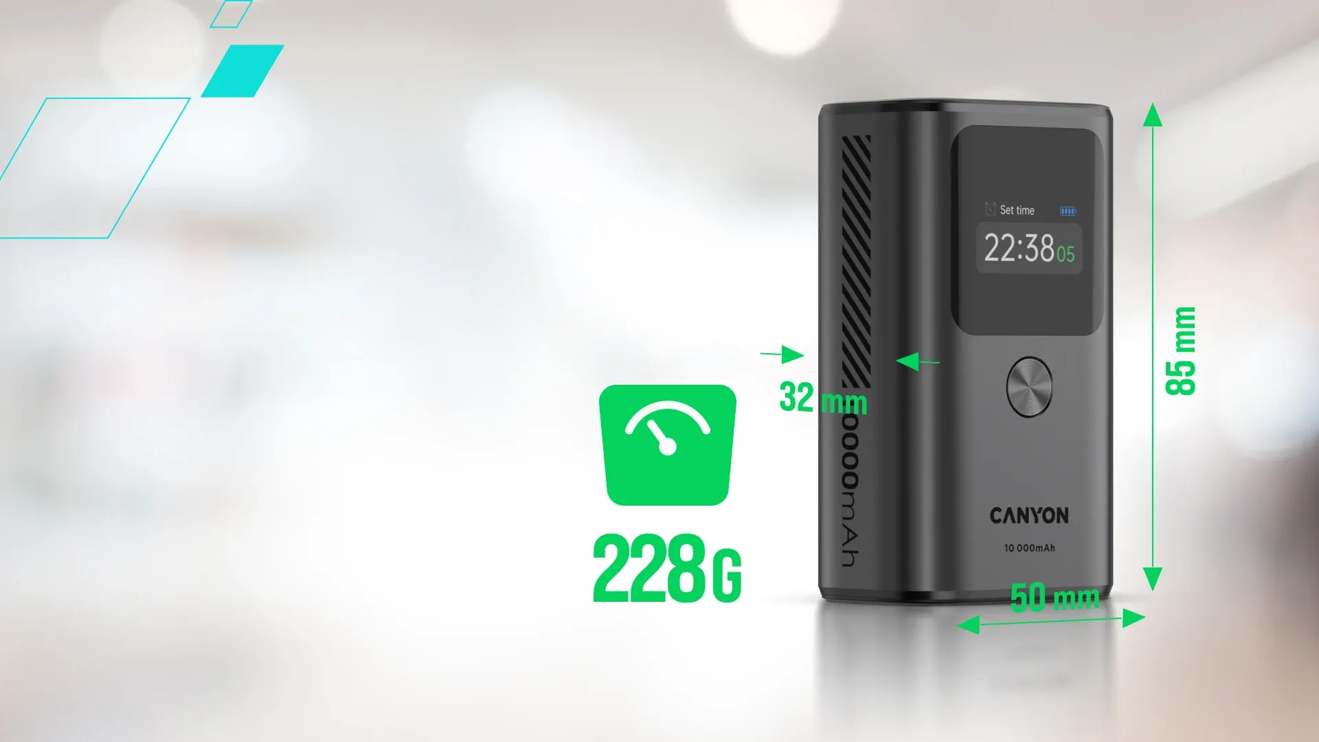 Who said power banks were just for charging? It doesn’t have to be that way. The OnPower 130 breaks the mold and does more, combining powerful performance with clever extras to simplify your life. With a 10,000 mAh capacity and 30W output, it charges any device quickly and efficiently: phone, tablet, or other gadgets – it’s your call. And with 3 outputs (2 USB (C) and 1 USB-A), you can charge devices simultaneously, which is perfect for workdays, trips, or emergencies. But there’s more to it. You get a smart TFT display that tells you how much battery is left. Crafted with durable aluminum metal housing, the OnPower 130 is also tough enough to handle your day-to-day adventures – and look good doing it. Here’s the fun part: this power bank doesn’t just charge; it can be your clock, alarm, and even a mini weather station with a built-in temperature display. Staying on schedule, starting your day, or being curious about the weather is fun and easy with the OnPower 130.