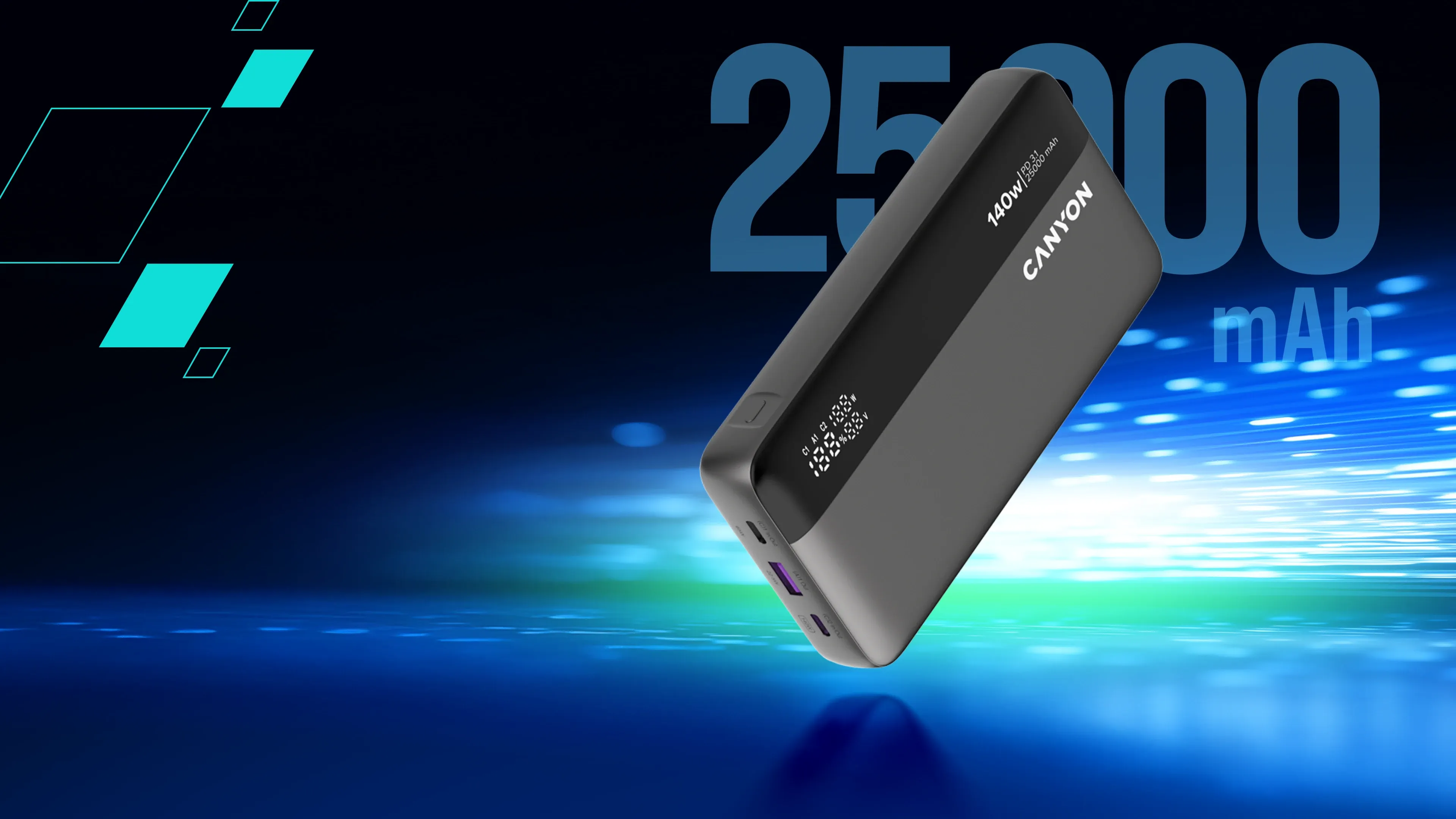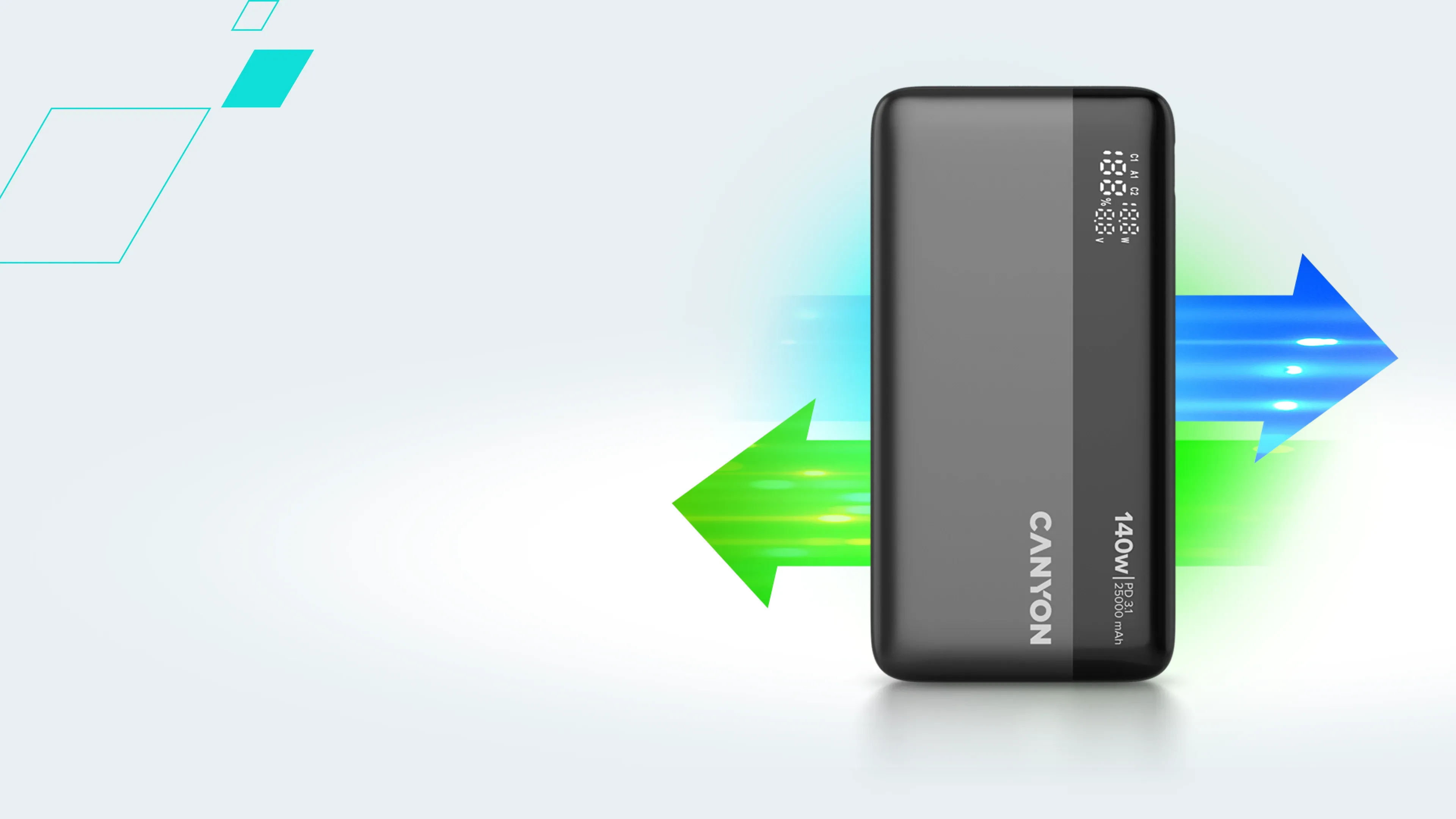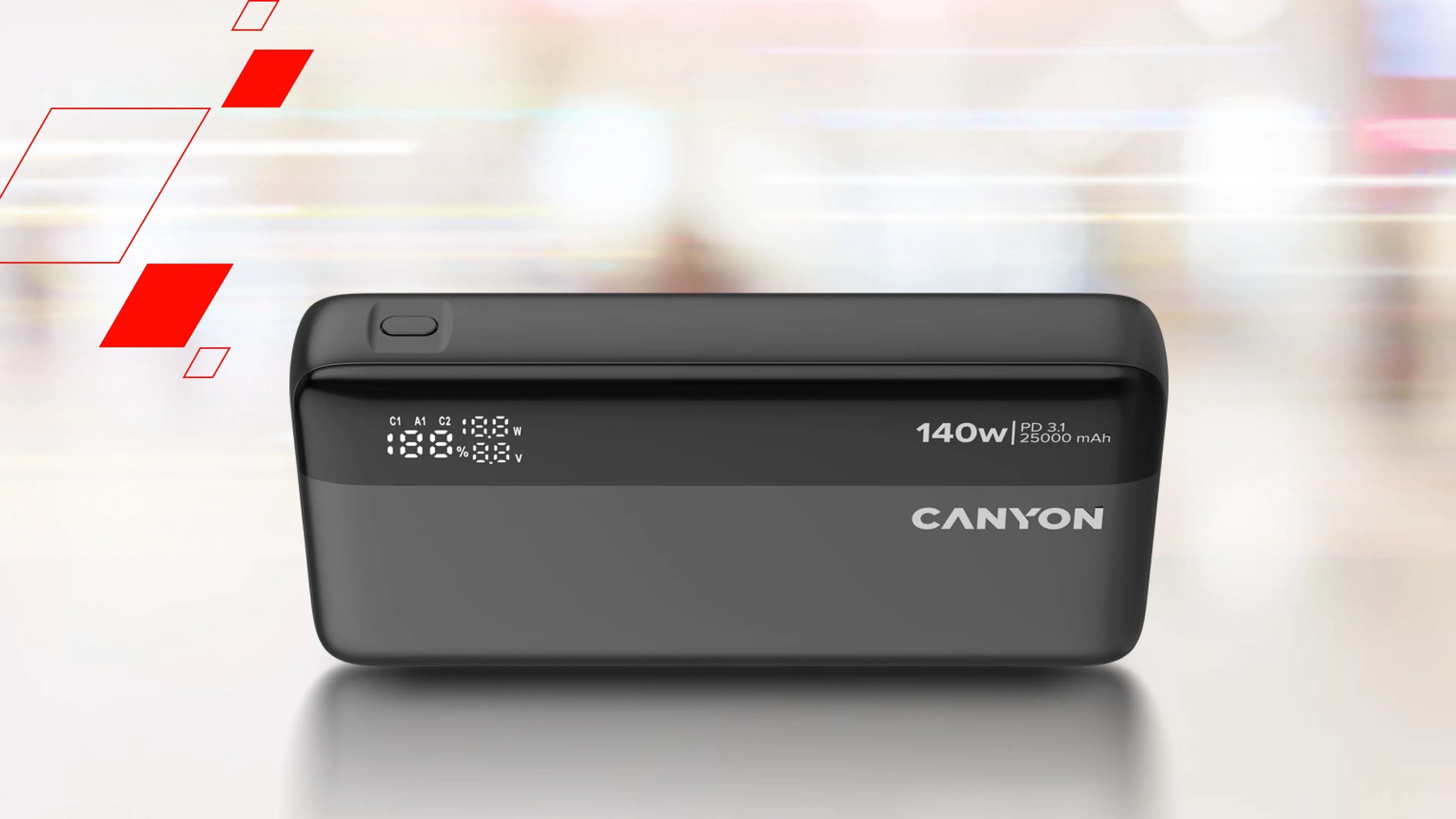 Never slow down and never run out of power again. The OnPower 240 is built for those who demand power without limits whether it’s racing through a variety of workday tasks, embarking on a fun adventure, or juggling multiple devices at once. With 140W ultra-rapid charging, this powerbank can fuel up your devices at incredible speeds, from laptops to smartphones and everything in between. Equipped with three ports and support for PD3.1, PPS, QC3.0, AFC & SCP, it delivers optimized power to every device, making sure there’s efficiency and compatibility across the board. Its massive 25,000mAh capacity means you’re covered for the long haul: multiple charges for your phone, extended life for your tablet, or enough energy to keep your laptop going when there's no outlet close to you. And thanks to simultaneous charging for three devices, you never have to choose between staying connected or sharing power. A digital display will keep you informed with real-time battery status, while six layers of advanced protection ensure safety, efficiency, and durability. Whether you're on the road, in the air, or off the grid, the OnPower 240 keeps you powered up without a worry in sight.