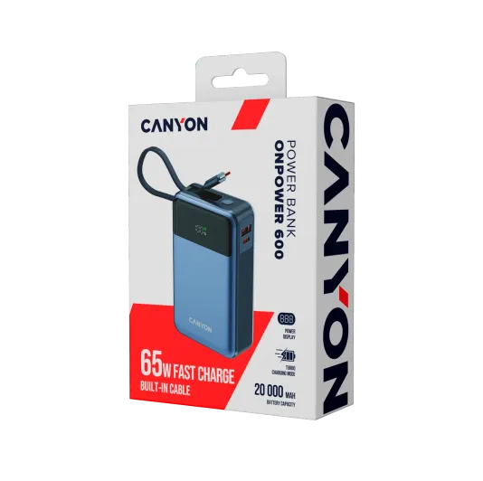 Life's too short to be held back by a dying battery. Introducing the OnPower 600 – your pocket-sized powerhouse. This device will power up all your devices on the go, letting you enjoy uninterrupted productivity (or relaxation, it’s up to you) whenever you need it. With a massive 20,000mAh capacity, the OnPower 600 will keep your devices charged for days. It doesn’t really matter what your goals are: digital nomads, frequent travelers, or simply those who can't afford downtime equally enjoy the benefits of the OnPower 600, staying connected at all times.The power bank’s built-in 65W cable delivers lightning-fast charging, which cuts down your charging time significantly. For you, this means less time waiting and more time doing what you love. The sleek, compact design also makes this device the perfect travel companion. Slip it into your bag or pocket and take it anywhere you go. Its durable, fireproof construction will keep your mind at peace, while the clear power display will make sure you stay informed. Imagine powering through a long flight, a camping trip, or a busy workday without a single thought about a low battery. The OnPower 600 makes this a reality. We like to call it a statement of independence. So, no more missed calls, interrupted video conferences, or drained devices. With the OnPower 600, you're always in control. It's the ultimate power solution for the modern lifestyle.