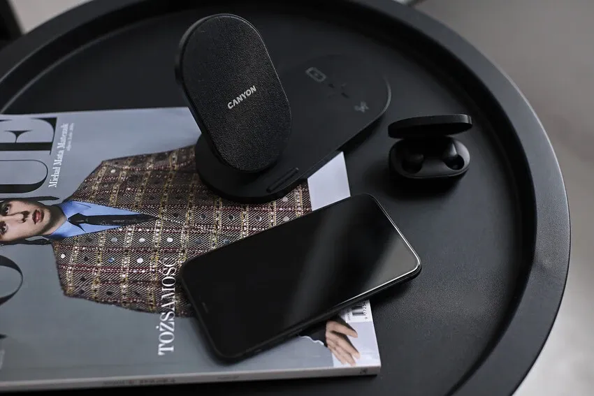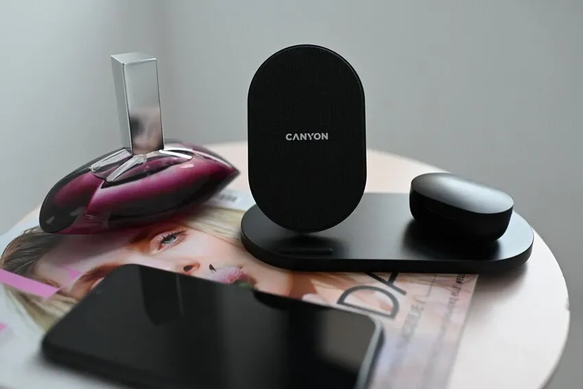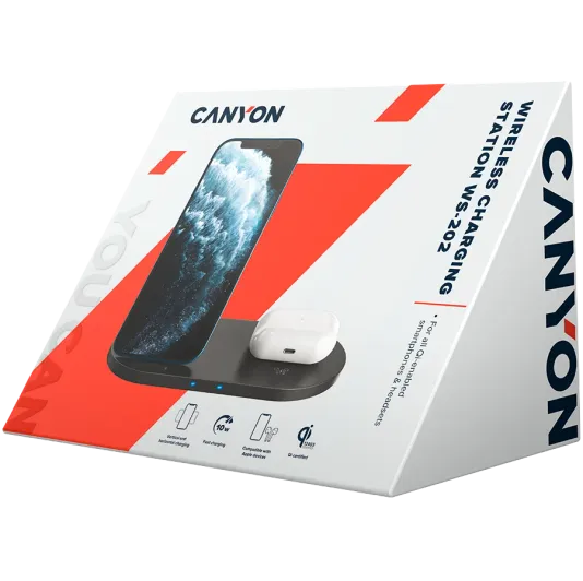 This 2 in 1 wireless charger Canyon CNS-WCS202B will allow you to charge your gadgets quickly and safely and get rid of unnecessary wires on your desktop. You can charge 2 devices simultaneously. Thanks to the intelligent «Blande» chipset, each device will be assigned the optimal power capacity. As a result, gadget batteries will not overheat, which means they will last much longer. The charging station for multiple devices CNS-WCS202B is compatible with any smartphone, including Apple iPhone or Samsung and AirPods or any earbuds that support the Qi standard. A sufficient charging distance up to 7 mm allows you to charge your phone without removing the case. The device is equipped with a USB-A to USB-C cable, USB 2.0. An excellent gadget for those who love order and appreciate minimalism!