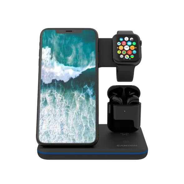 3-in-1 Wireless charging station for gadgets supporting QI technology WS-302