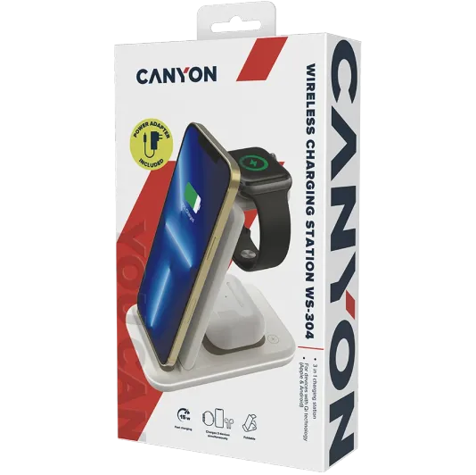 Canyon WS-304 charging station can set you free from the chaos of charging cables. It works with most smartphones and all the devices compliant to the Qi standard, including iPhone, Apple Watch, and AirPods. It is a 3-in-1 station, so all your devices will fit onto the charging surfaces neatly thanks to its clever design. By the way, feel free to place your smartphone in any orientation you’d like and continue to use it. Effective charging distance is up to 8mm, so you can keep the cases on. The Chipvision intelligent chipset supports Quick Charge, effectively controls the charging parameters and prevents overheating. An anti-slip coating ensures the protection for your devices, and an LED ambient light allows you to control the situation just by a quick glance. Get it now and get rid of the annoying wires!