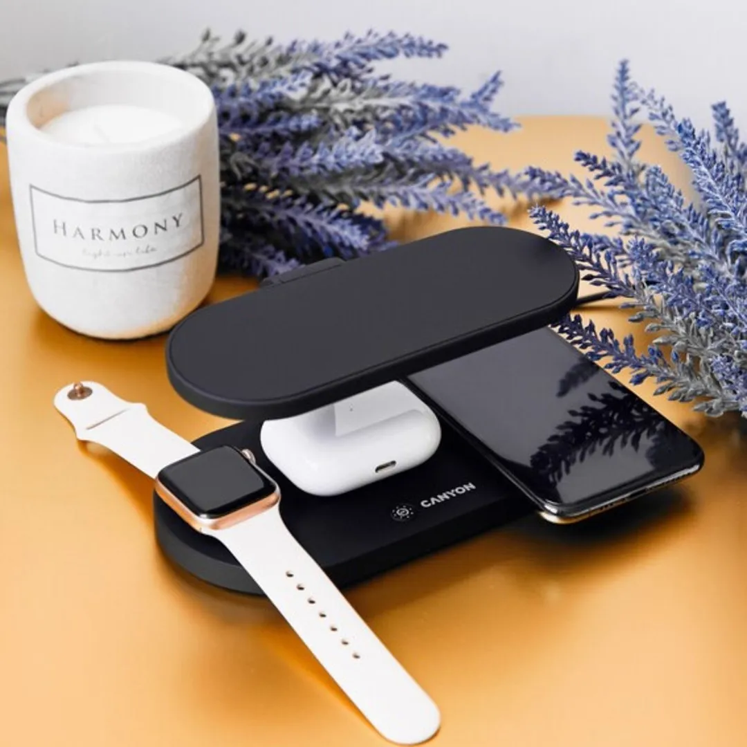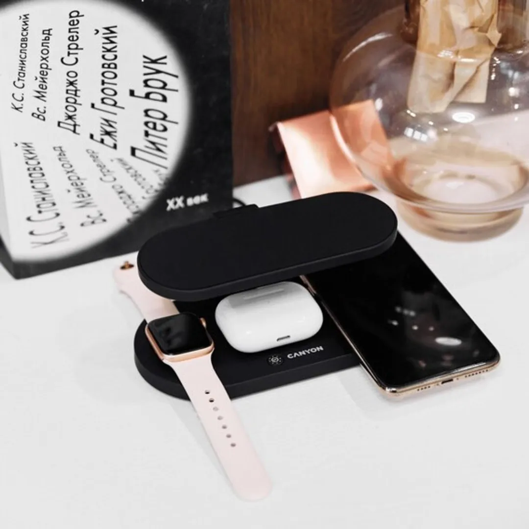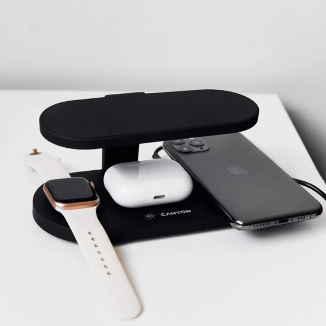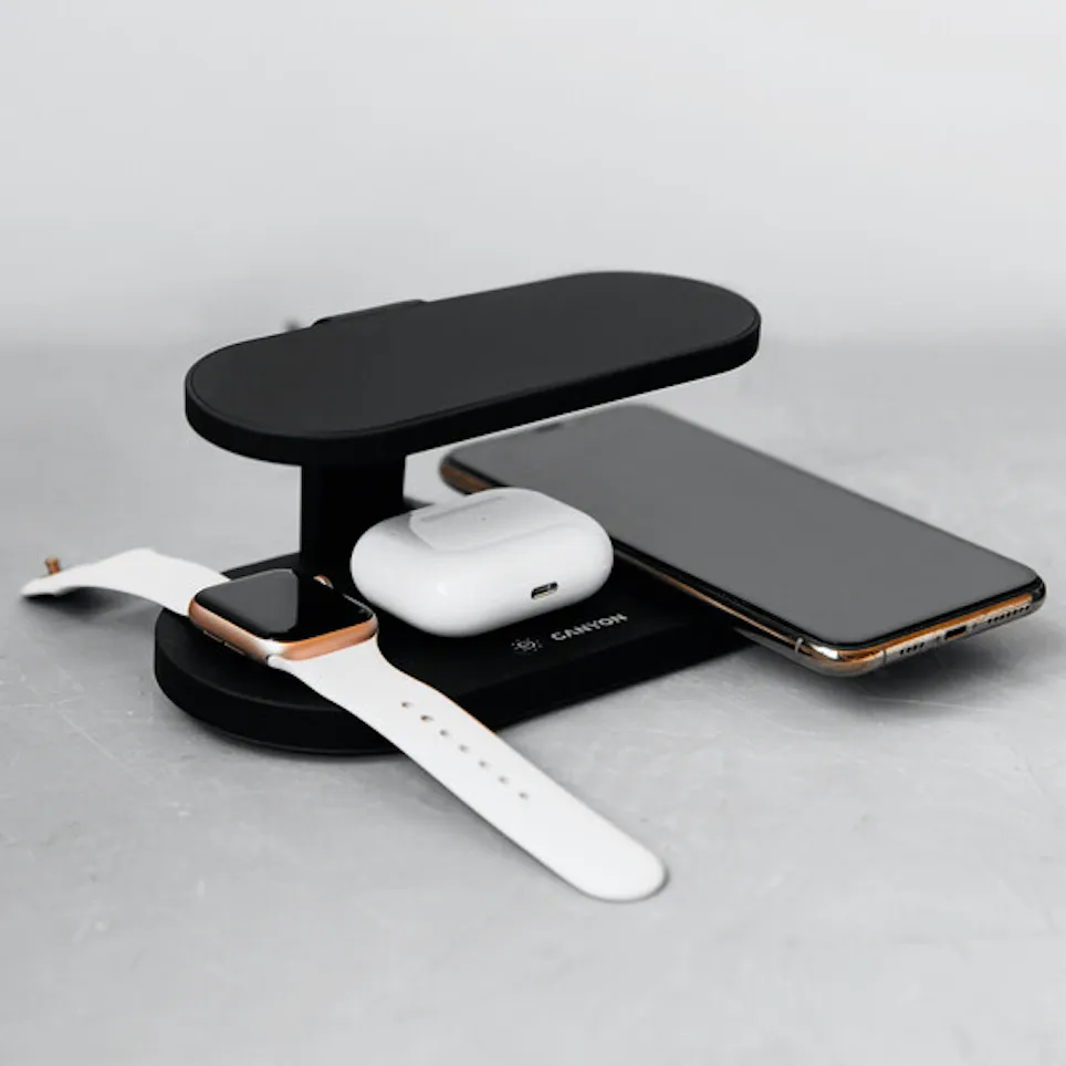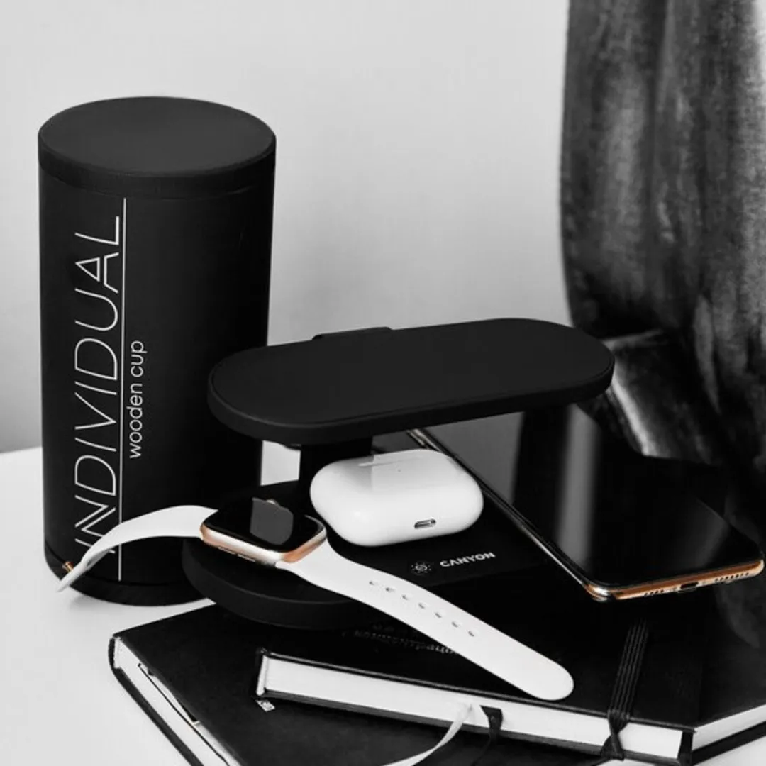 This wireless charging station embodies an entirely new approach to gadget charging. You can safely charge three devices simultaneously without a wire and one device with a wire. The wireless module's working distance is up to 7 mm, and its efficiency is up to 86% of a similar wired one. The fast charging function is also supported. The station is also equipped with a UV disinfection lamp to help get rid of germs and viruses. The station is perfect for both Apple products and most other QI-compatible gadgets. Thanks to its compact size and elegant shape, the station will look great on any desk or shelf.